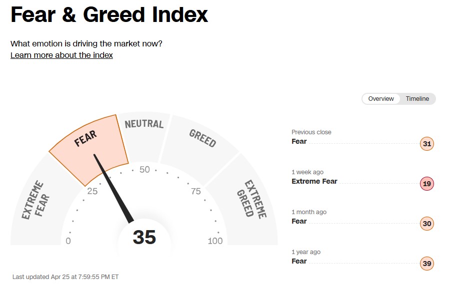 Para empezar, el Fear and Greed Index está actualmente en 35. Todavía en zona de «miedo», aunque alejándose de los niveles de pánico de hace unas semanas. El mercado, al menos de momento, parece respirar un poco.